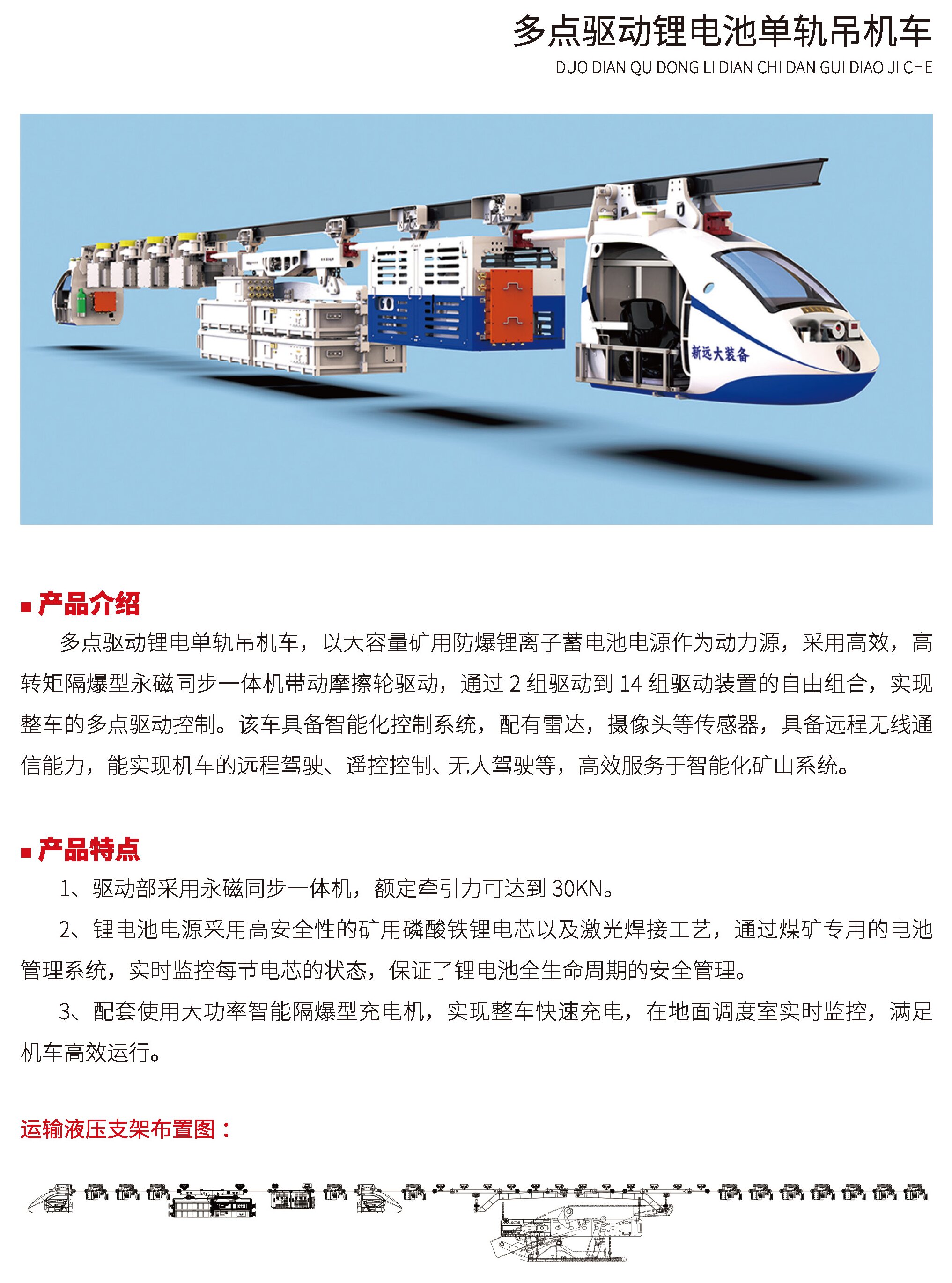 多點(diǎn)驅(qū)動鋰電池單軌吊機(jī)車
